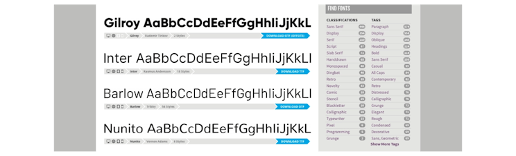 Sẽ thật thiếu sót nếu chúng tôi không đề cập đến nhà phân phối phông chữ mã nguồn mở, miễn phí hàng đầu, Google Fonts . Với gần 1000 phông chữ có sẵn trong hơn 135 ngôn ngữ, Google Fonts vẫn là nguồn tài nguyên dành cho các nhà thiết kế, những người yêu thích kiểu chữ và bất kỳ ai muốn tải xuống các kiểu chữ cho cả mục đích sử dụng cá nhân và thương mại.