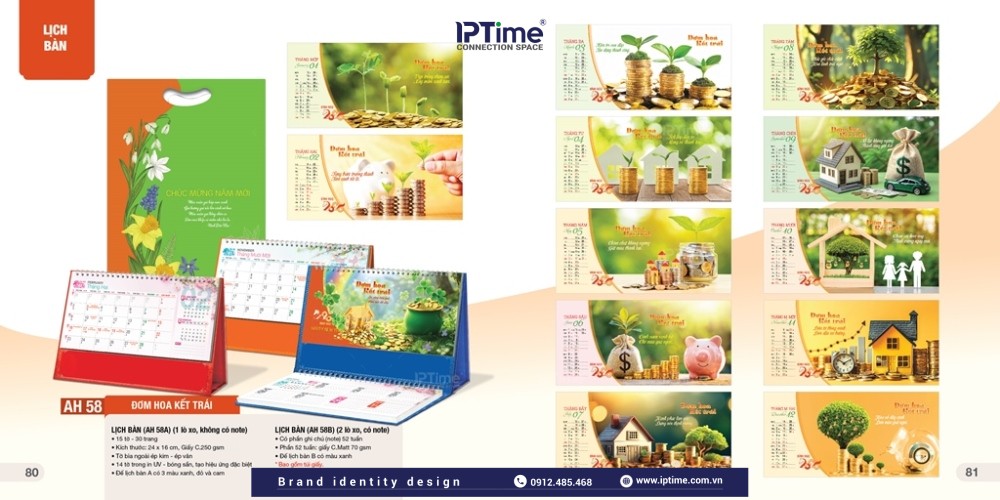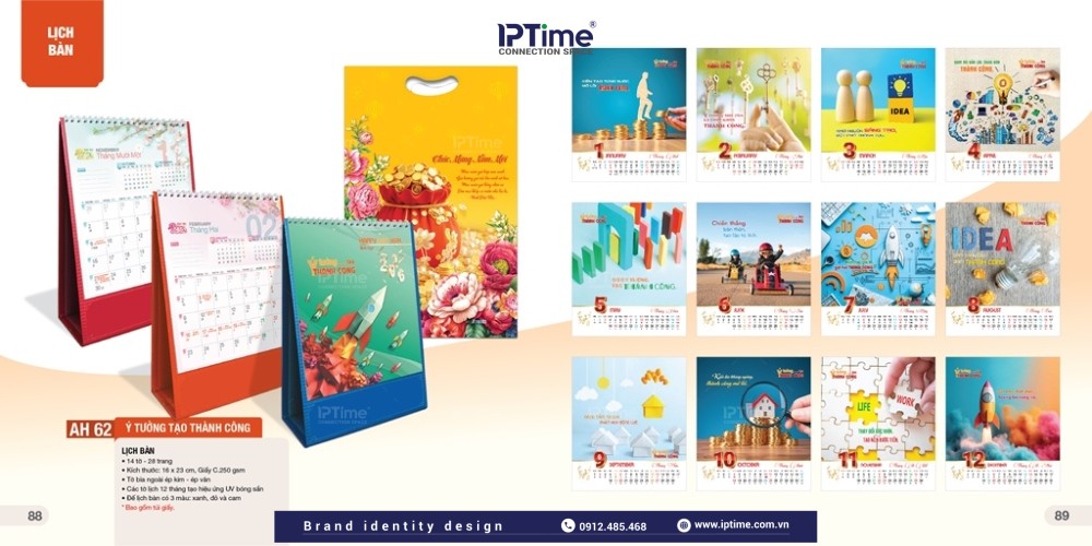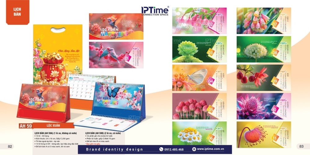 Ngoài ra, IPTIME Branding nhận in lịch bàn theo yêu cầu, khách hàng muốn lịch có bố cục như thế nào, chúng tôi sẽ thiết kế và in lịch theo mẫu, in trên chất liệu khách yêu cầu như Lịch để bàn đế gỗ, đế mica,..
