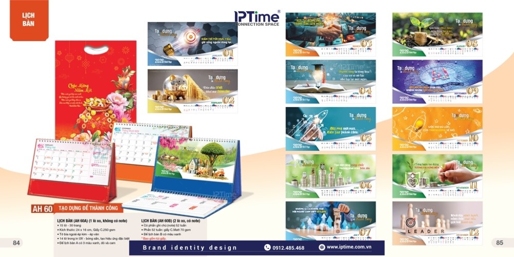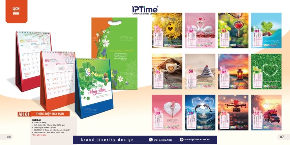 Công ty Thiết kế IPTIME Branding là đơn vị cung cấp lịch để bàn in theo yêu cầu với số lượng linh hoạt. IPTIME Branding được biết đến với những mẫu lịch bàn độc đáo, sáng tạo và đẹp mắt. Chúng tôi cung cấp rất nhiều mẫu thiết kế lịch 2026 mới, phong cách hiện đại và bắt mắt để khách hàng lựa chọn.