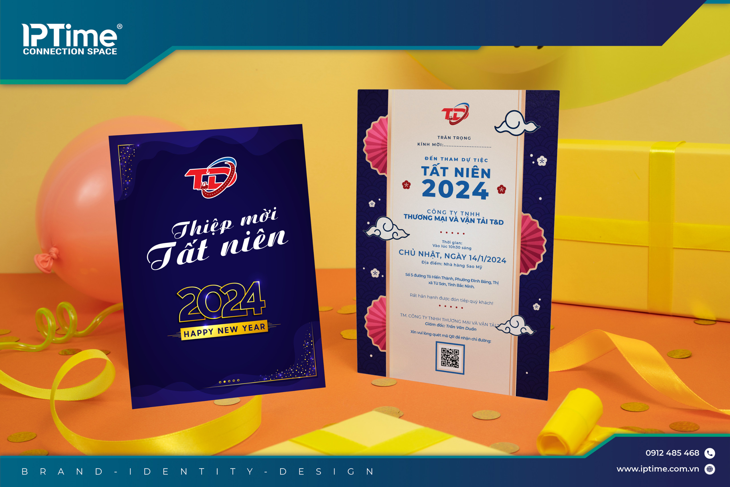 Công ty vận tại T&D thiết kế thiệp mời tất niên công ty và backdrop 2023